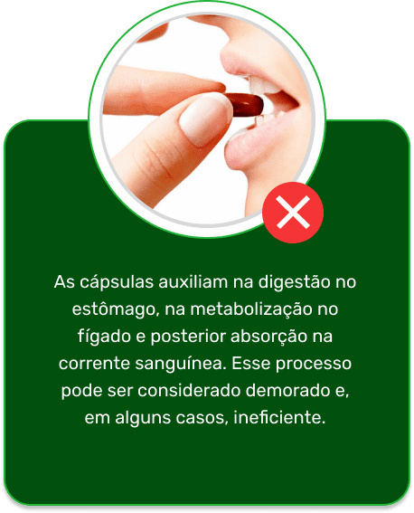 Nossa fórmula líquida torna a absorção dos nutrientes até 10x mais eficaz em comparação aos suplementos em cápsulas!